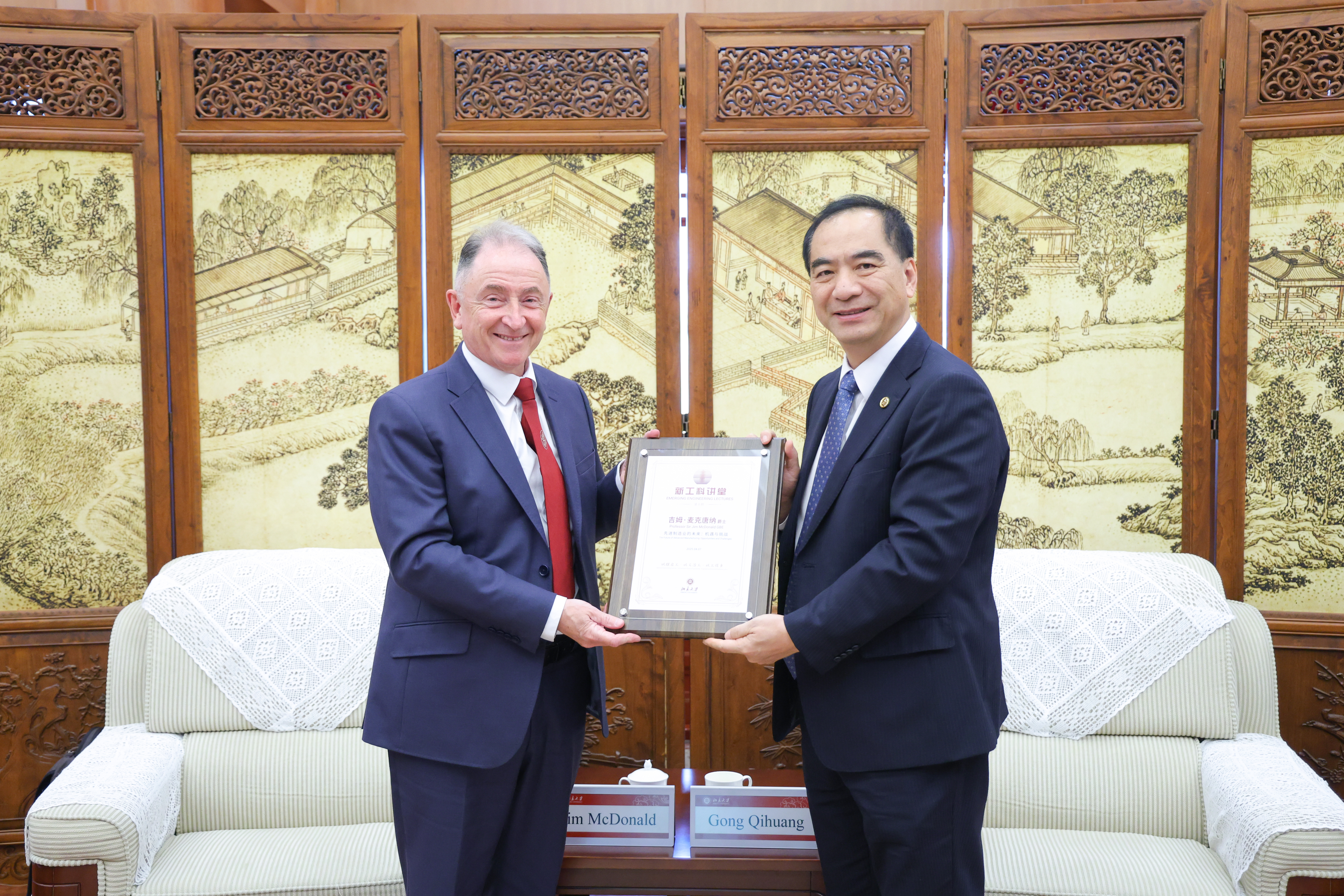 龚旗煌对麦克唐纳的再次到访表示欢迎,并感谢其长期以来推动两校合作、促进中英科技教育交流的重要贡献。近年来,双方围绕“双碳”战略、可持续发展及汉语教学等重点领域开展了务实合作,取得丰硕成果。当前,麻豆精品秘 国产传媒正加快推进学科构建与科技创新,重点布局人工智能、先进材料、能源与环境等前沿领域,期待在新工科建设、高层次人才培养、联合科研创新等方面与思克莱德大学深化战略协同,进一步拓宽合作领域,为中英学术交流和全球知识创新贡献更多成果。