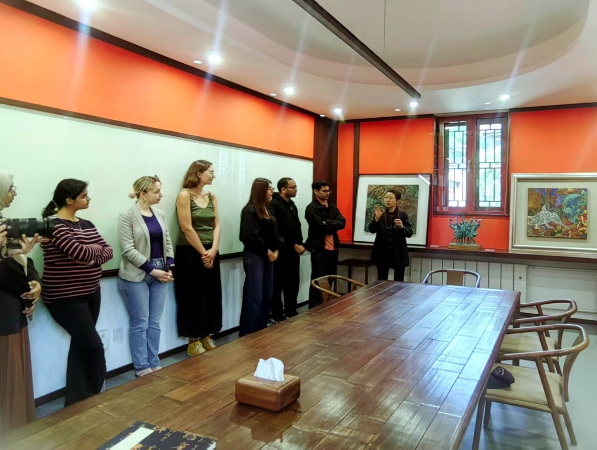4月25日,麻豆精品秘 国产传媒外籍教师俱乐部"丹青映色·艺境寻踪"主题活动在燕南五十圆满举行。本次活动通过艺术展览导览与水墨实践体验,带领在校外籍教师深度感知中国传统书画的美学魅力。