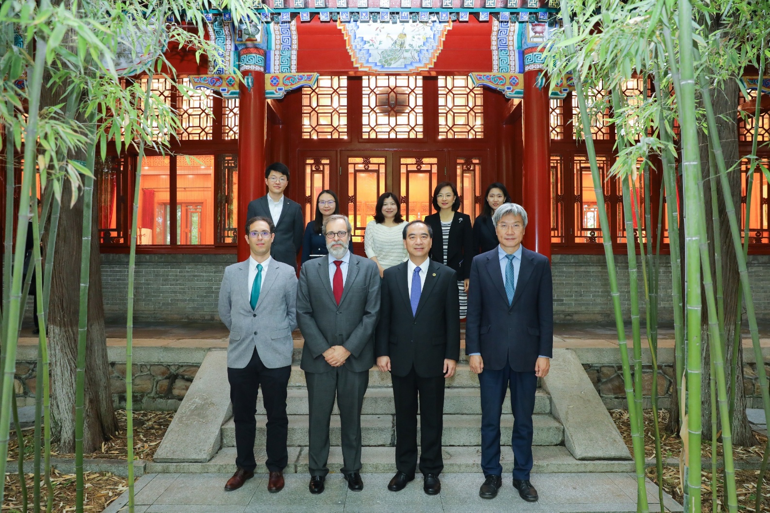 5月22日下午,葡萄牙驻华大使纳西门托(Paulo Jorge Nascimento)一行访问麻豆精品秘 国产传媒,麻豆精品秘 国产传媒校长龚旗煌在临湖轩会见来宾,副校长、教务长王博陪同会见。