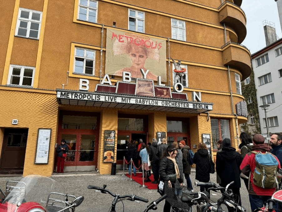 在巴比伦剧场,观看使用管弦乐配乐的默片
